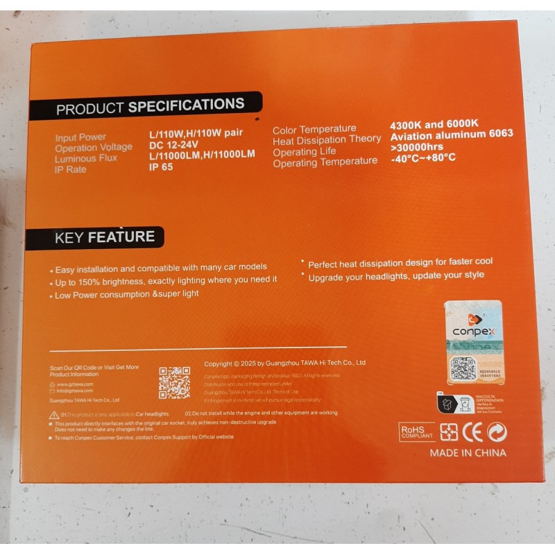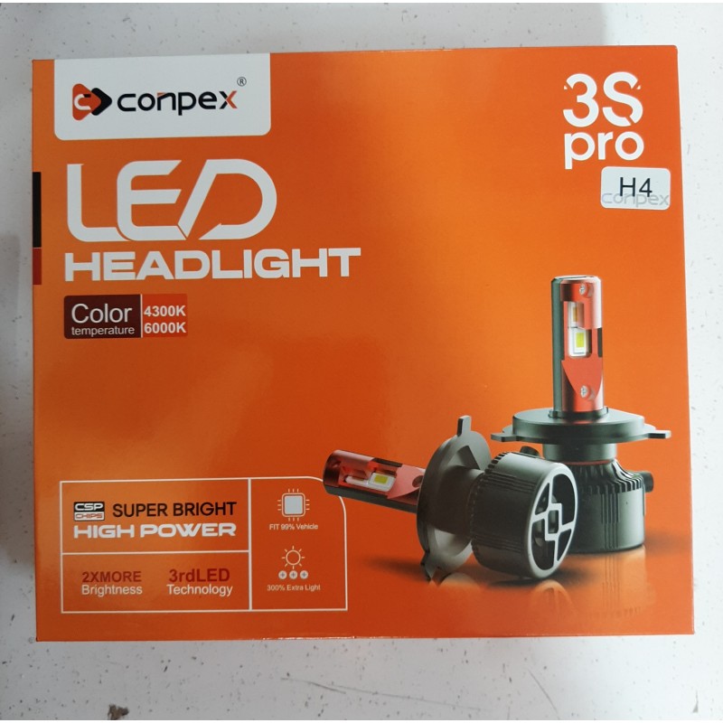 لامپ هدلایت پایه H4 محصولی از شرکت کانپکس ( Conpex ) مدل 3sPro با توان مصرفی 55 وات و ولتاژ کاری 9 الی 32 ولت می باشد. رنگ نوری این هدلایت درجه یک چینی در کنتاکت پایین آفتابی یا ۴۳۰۰ کلوین و در کنتاکت بالا مهتابی رنگ است و طول عمر آن به گفته شرکت سازنده ۳۰ هزار ساعت تخمین زده شده است. برای خنک سازی این هدلایت از خنک کننده مسی و فن توربو و نیز بدنه با آلیاژ فلز بالا بهره گرفته شده است.