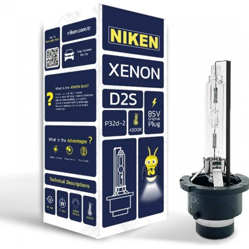 لامپ D2S شرکت Niken ترکیه با ولتاژ نامی 85 ولت و توان 35 وات با شارنوری 3200 لومن می باشد. طول عمر این لامپ ۱۵۰۰ ساعت می باشد. رنگ نوری این لامپ ترکی ۴۳۰۰ کلوین است. و دقیقا رنگ نوری آن شبیه نورخورشید می باشد.