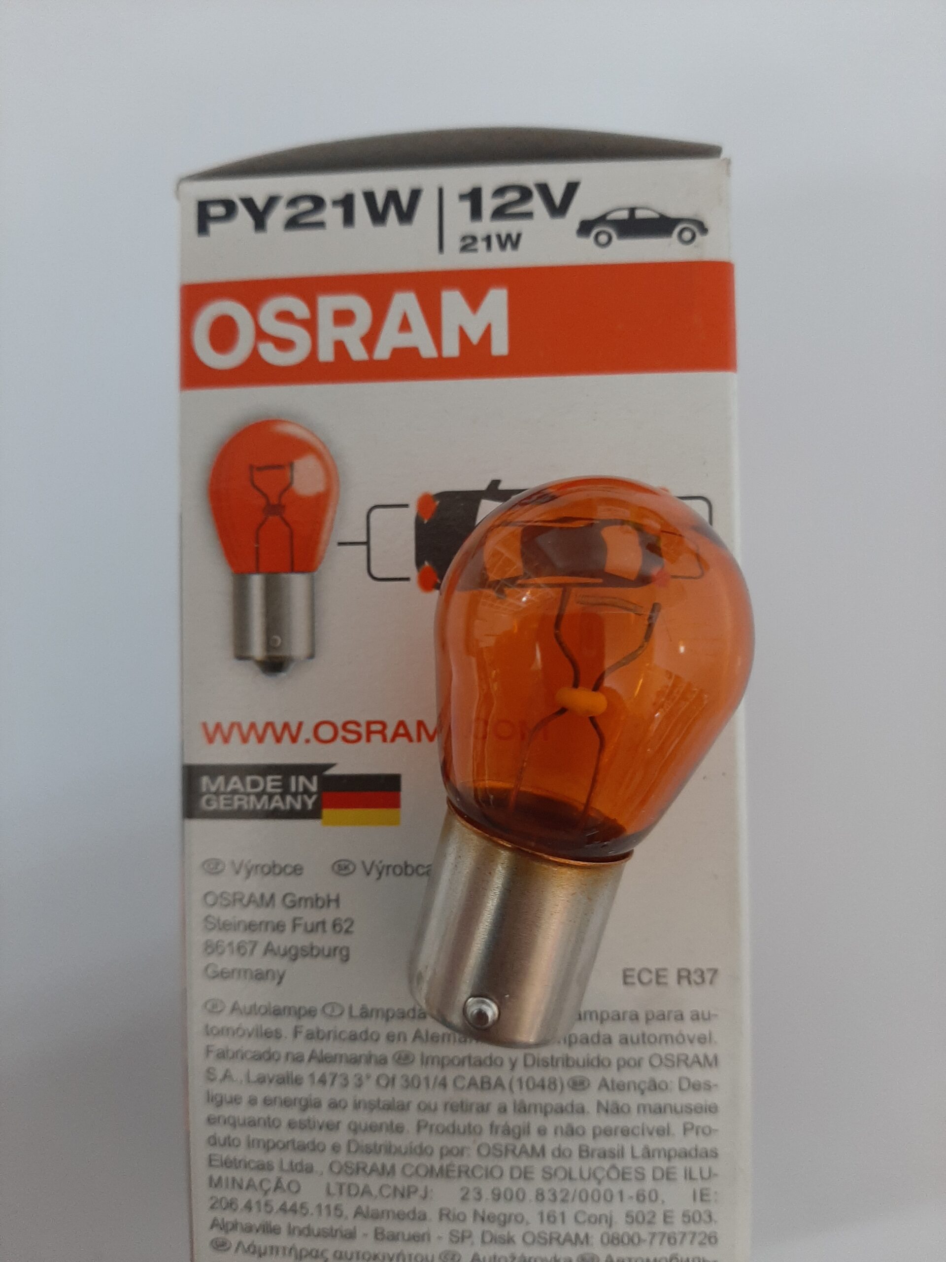 لامپ تک کنتاکت نارنجی با ولتاژ ۱۲ ولت و توان مصرفی ۲۱ وات محصولی از شرکت OSRAM آلمان می باشد. این لامپ آلمانی مورد استفاده در راهنمای انواع خودرو می باشد.