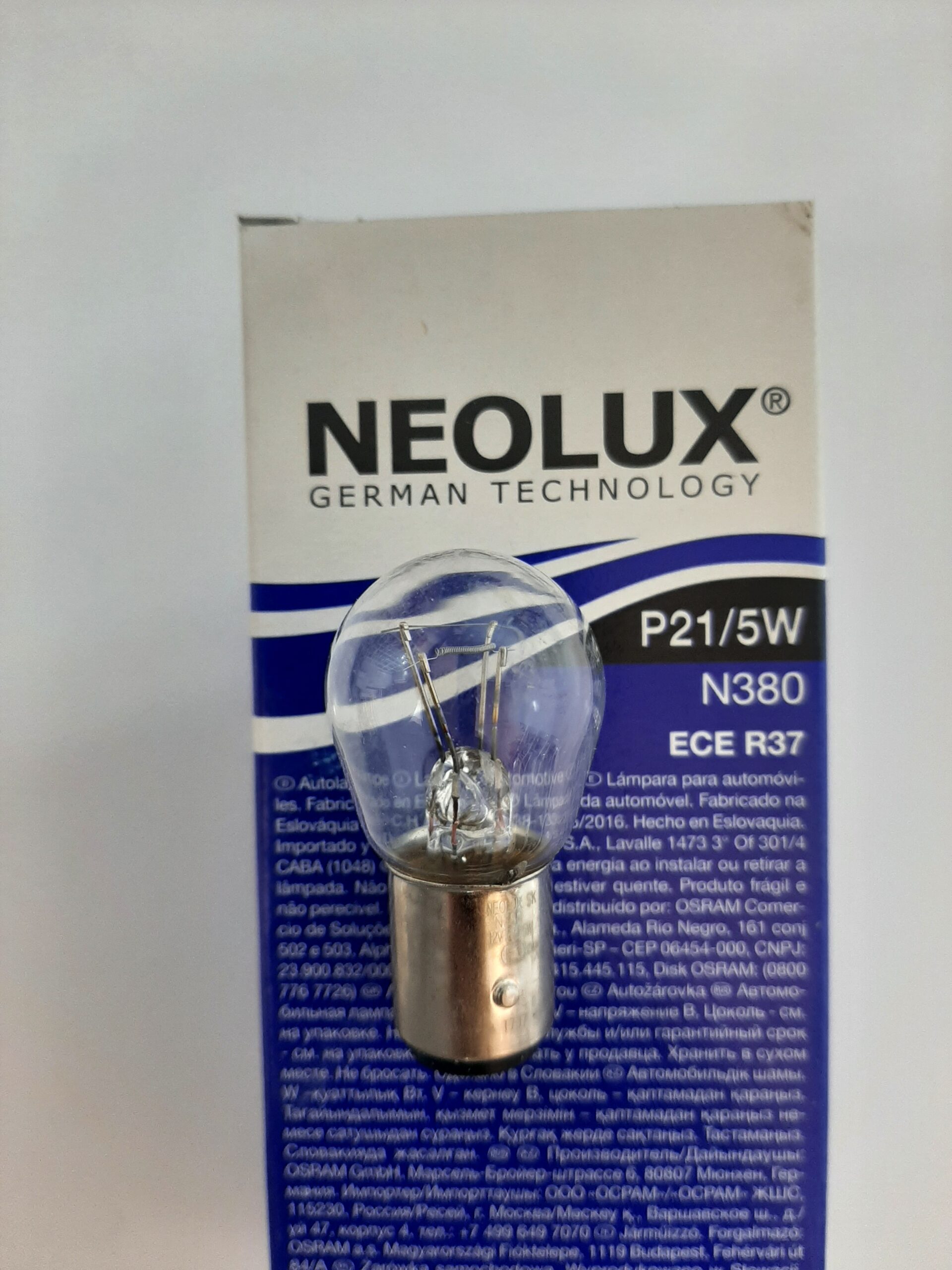 لامپ دوکنتاکت با ولتاژ ۱۲ ولت و توان مصرفی ۲۱وات و ۵ وات محصولی از Neolux می باشد. این محصول ساخت کشور اسلواکی بوده و برای روشنایی ترمز انواع خودروها قابل استفاده می باشد.