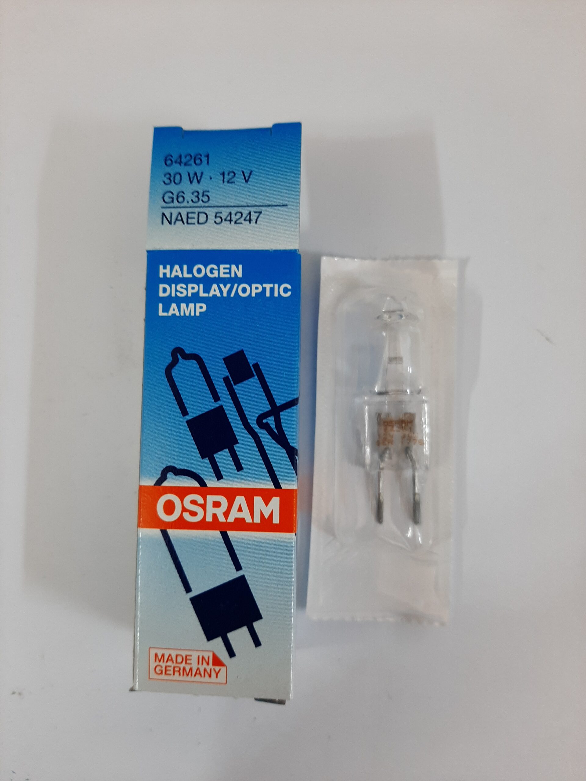 لامپ هالوژن پایه سوزنی با ولتاژ ۱۲ولت و توان مصرفی ۳۰ وات محصولی از شرکت Osram آلمان می باشد. این محصول با کد ۶۴۲۶۱ در بازار شناخته می شود.