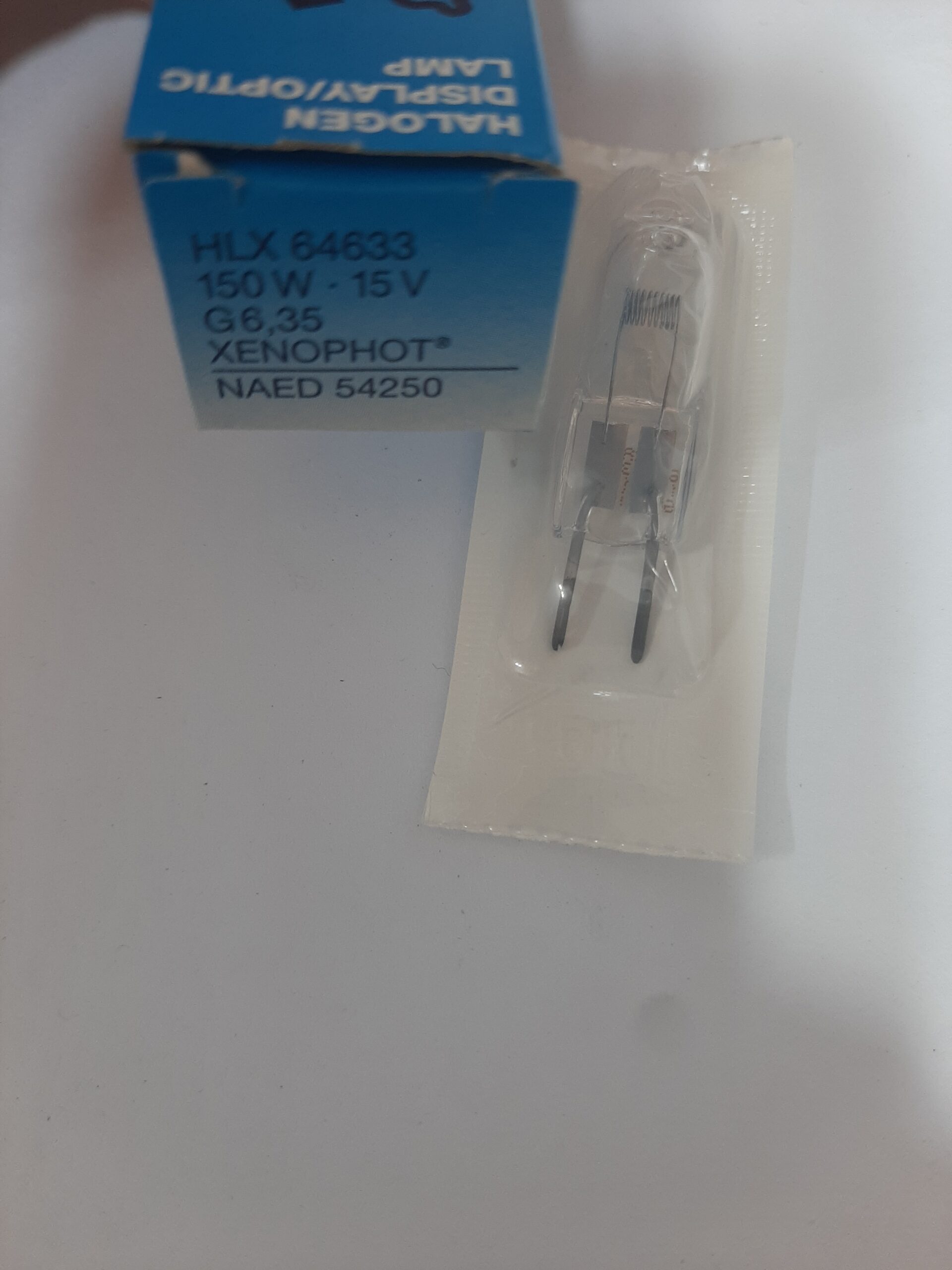 لامپ سوزنی اسرام با کد ۶۴۶۳۳ دارای ولتاژ ۱۵ ولت و توان مصرفی ۱۵۰ وات