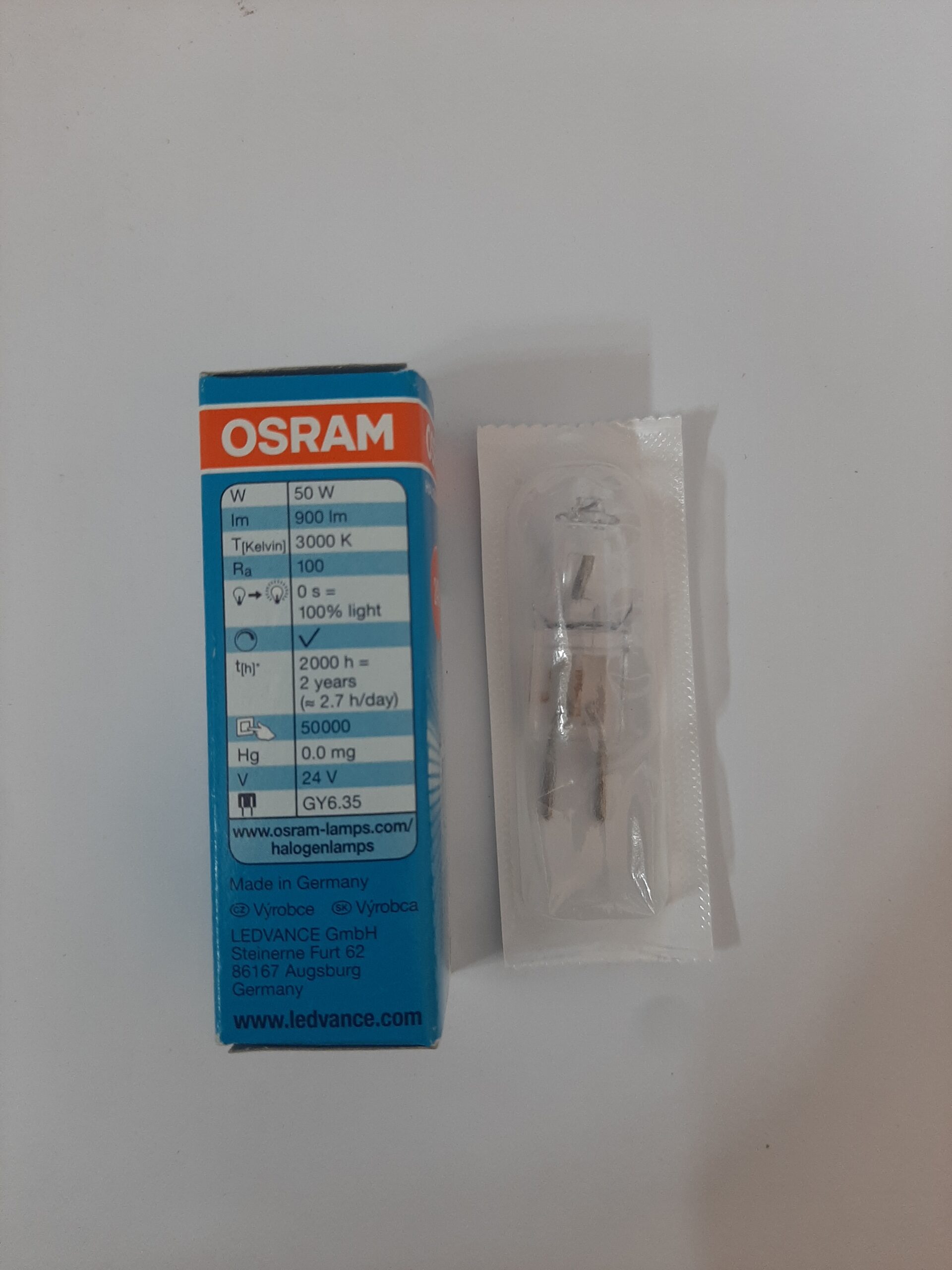 لامپ پایه سوزنی اسرام با کد 64445u دارای ولتاژ ۲۴ و توان مصرفی ۵۰ وات می باشد. طول عمر این لامپ ۲۰۰۰ ساعت بوده و دارای رنگ نوری ۳۰۰۰ کلوین است. میزان روشنایی این لامپ آلمانی ۹۰۰ لومن می باشد.