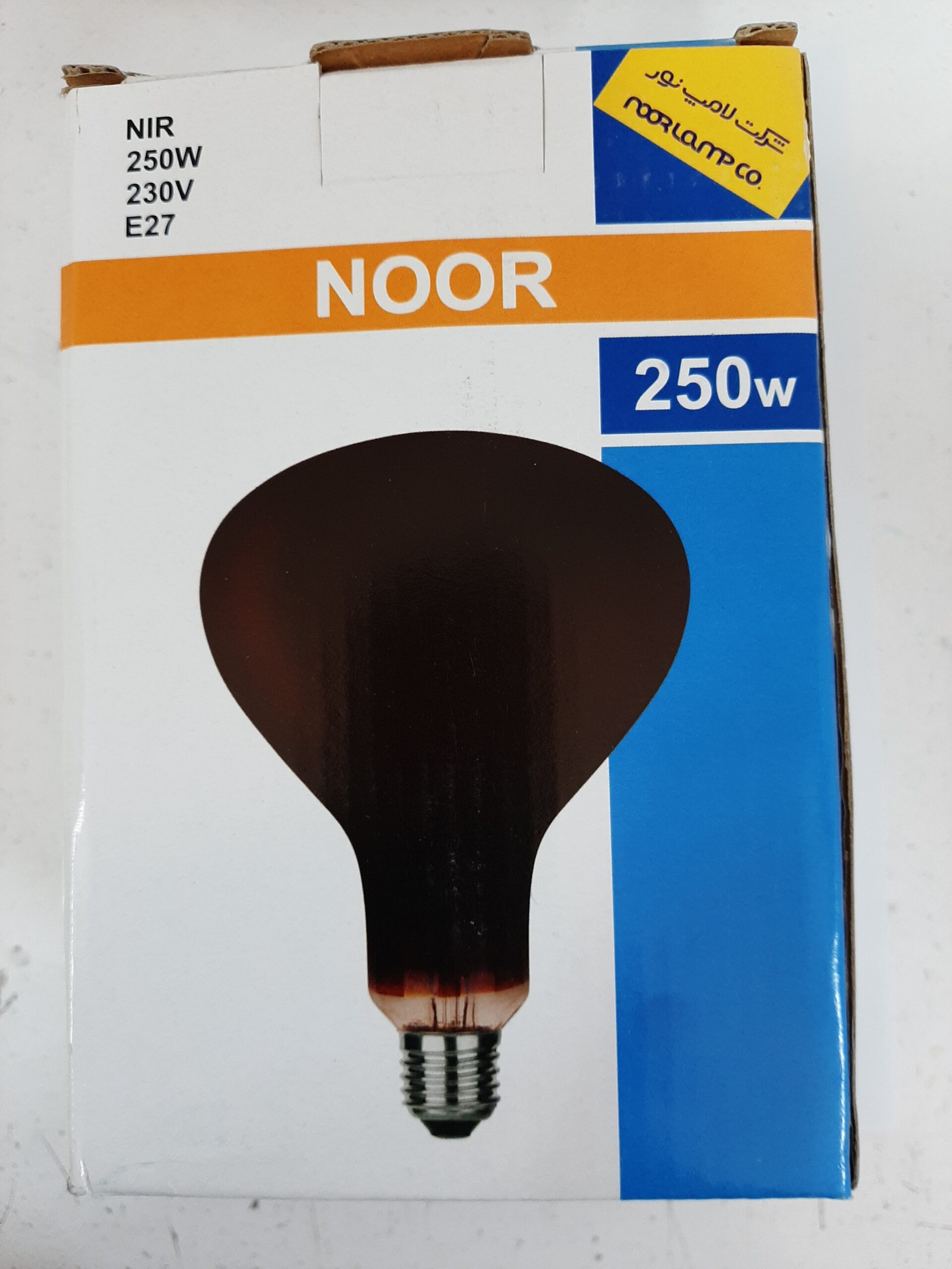 لامپ مادون قرمز ۲۵۰ وات شرکت لامپ نور با ولتاژ ۲۲۰ ولت و توان مصرفی ۲۵۰ وات می باشد. این لامپ دارای پایه e27 بوده و برای درمان کمردرد- پادرد و … – استفاده در کرسی – استفاده به عنوان لامپ مادر در صنایع پرورش مرغ و … کاربرد دارد.