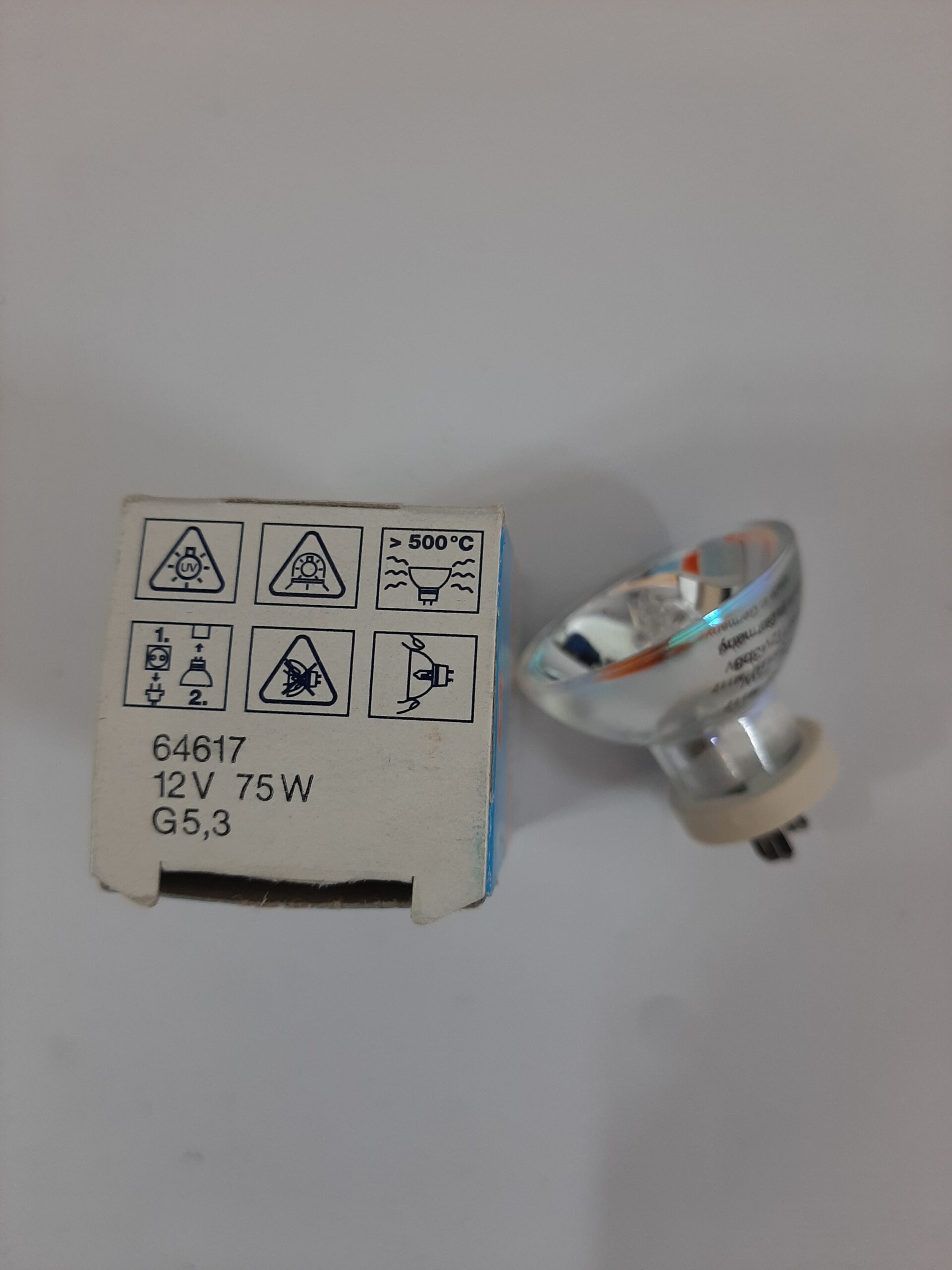 لامپ هالوژن کاسه ای با پایه تیغه ای شکل و ولتاژ ۱۲ولت و توان مصرفی ۷۵ وات محصولی از شرکت OSRAM می باشد که عمده استفاده آن در حوزه دندانپزشکی می باشد.