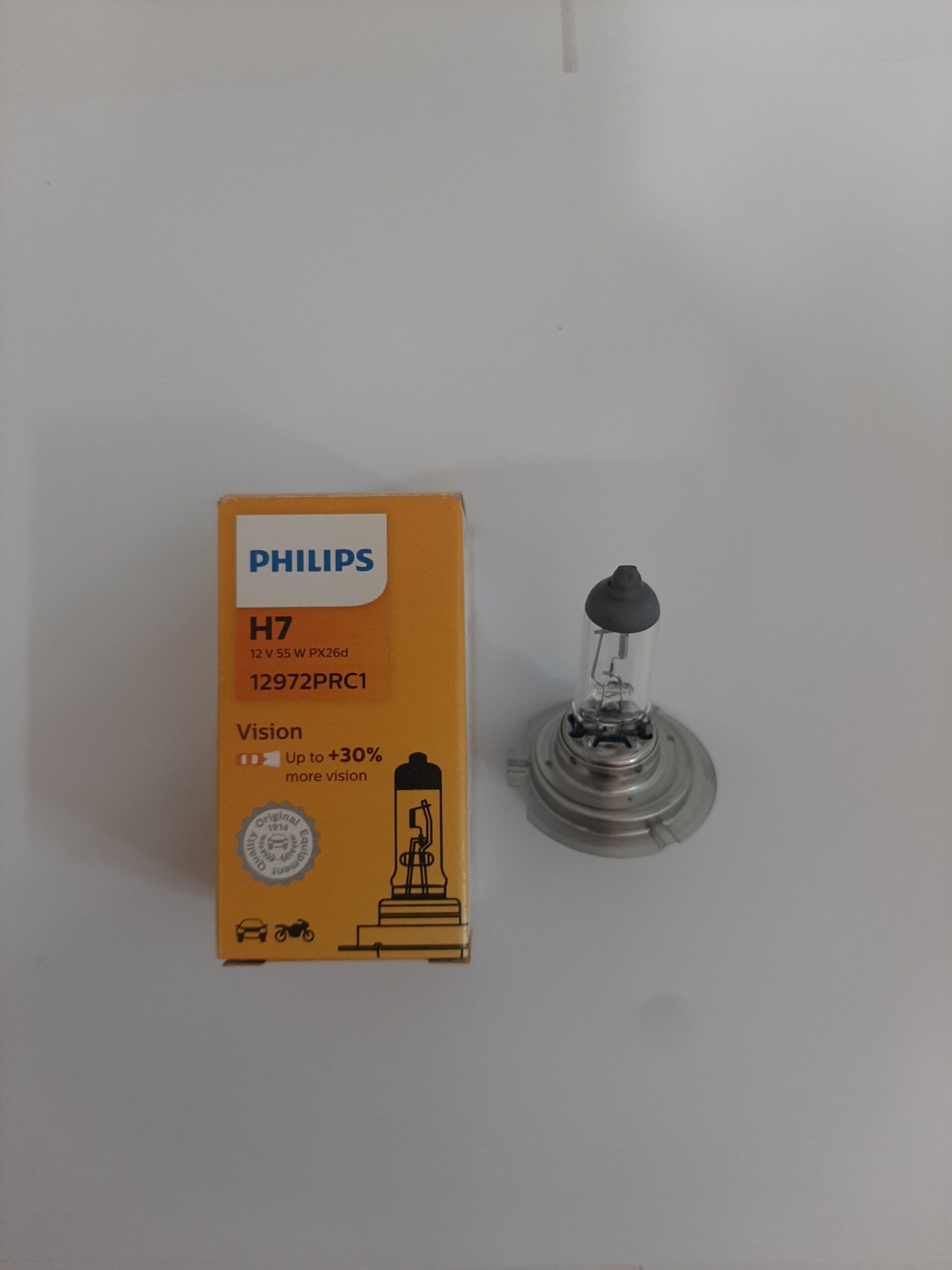 لامپ H7 با ولتاژ ۱۲ولت و توان مصرفی ۵۵ وات محصولی از شرکت فیلیپس می باشد. مدل این لامپ ویژن بوده و نسبت به لامپ های استاندارد ۳۰درصد روشنایی بیشتری دارد. این محصول ساخت آلمان می باشد و برای سمند – سوزوکی ویتارا – تارا – پارس – پراید ۱۱۱ و ۱۳۲ و … مناسب می باشد.