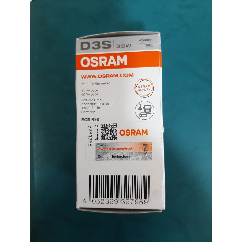 لامپ زنون D3S اسرام آلمان با توان 35 وات و رنگ نوری 4500 کلوین محصولی از شرکت اسرام آلمان می باشد . این لامپ دارای 3200 لیومن شارنوری است و حداکثر 4000 ساعت عمر می کند. شرکت اسرام برای مقابله با سودجویان و متقلبین برای این نمونه لامپ ها کد در نظر گرفته است که با وارد کردن آن در وب سایت این شرکت ، مشخصات لامپ خریداری شده برای شما نمایش داده می شود.